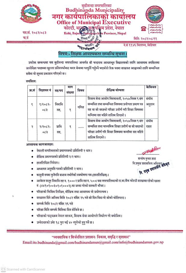 Home » शिक्षक आवश्यकता सम्बन्धी सूचना!