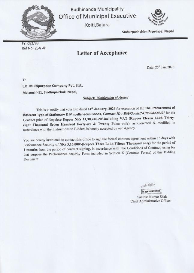 Home » The Procurement of Different types of Stationary and Miscellaneous Goods (BM/Goods/NCB/2082-83/01)