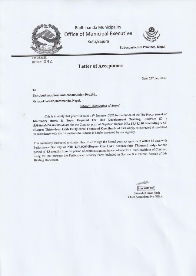 Home » The Procurement of Machinery Items & Tools Required for Skill Development Training (BM/Goods/NCB/2082-83/03)