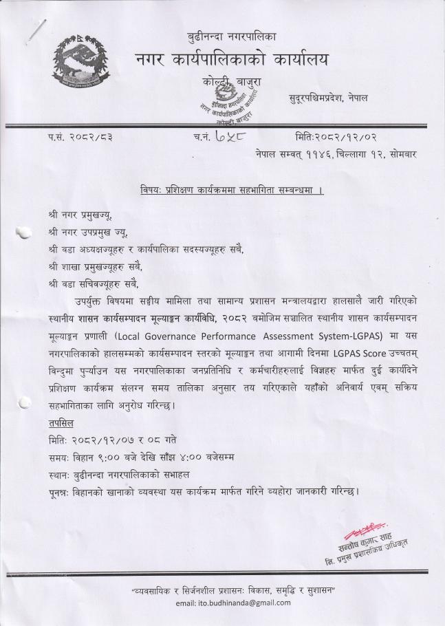 प्रशिक्षण कार्यक्रममा सहभागिता सम्बन्धमा ।